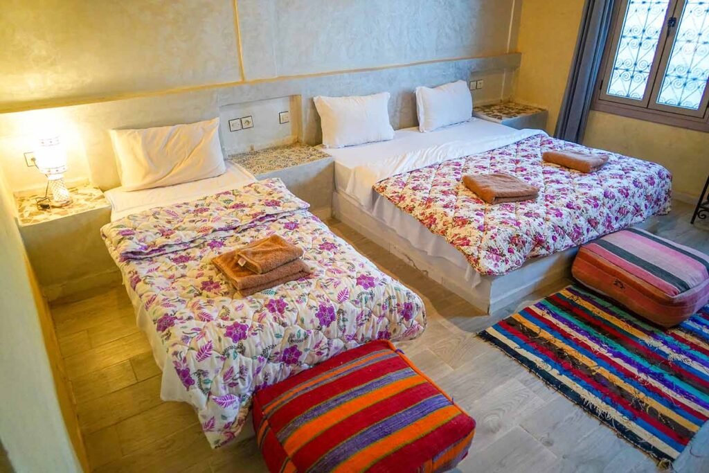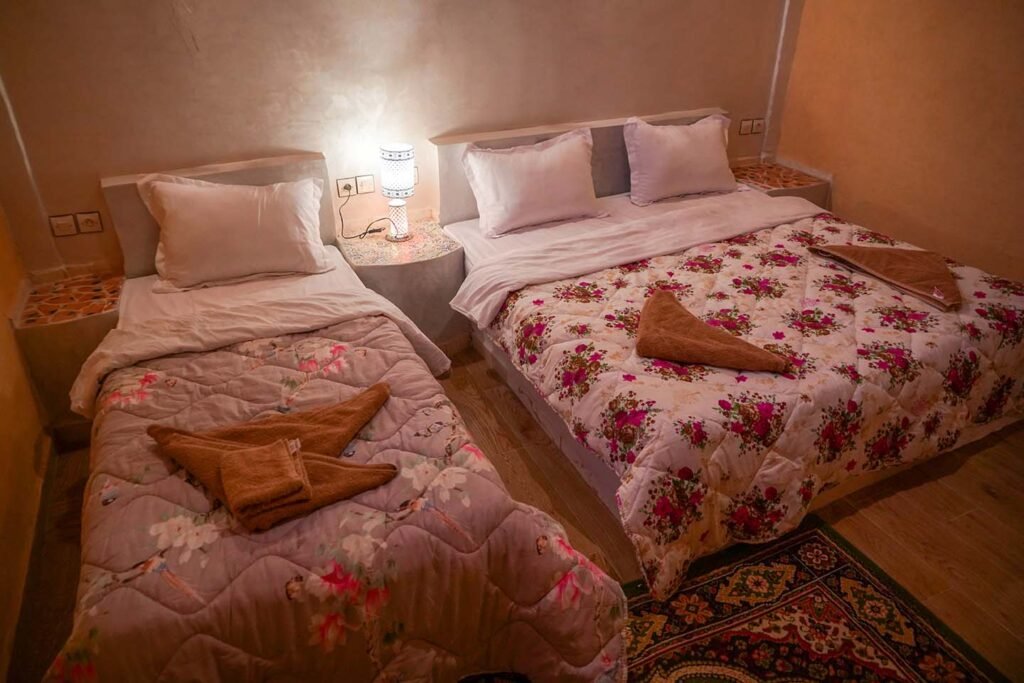 La Chambre Triple de Sahara Garden est idéale pour les amis, petites familles ou voyageurs souhaitant partager un séjour ensemble tout en profitant d’un espace confortable et chaleureux.