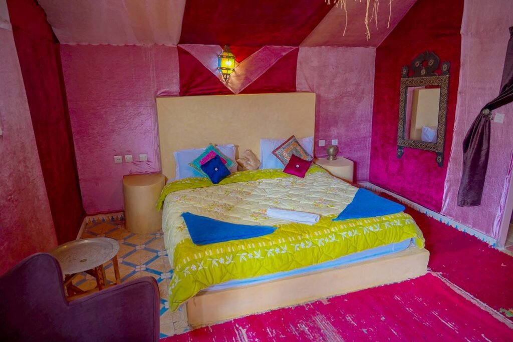 Plongez dans l’atmosphère paisible de notre maison d’hôtes et profitez d’un séjour authentique, alliant confort, nature et hospitalité marocaine. Laissez-vous séduire par la sérénité du désert, la chaleur de l’accueil local et le charme d’un cadre où chaque détail est pensé pour votre bien-être.